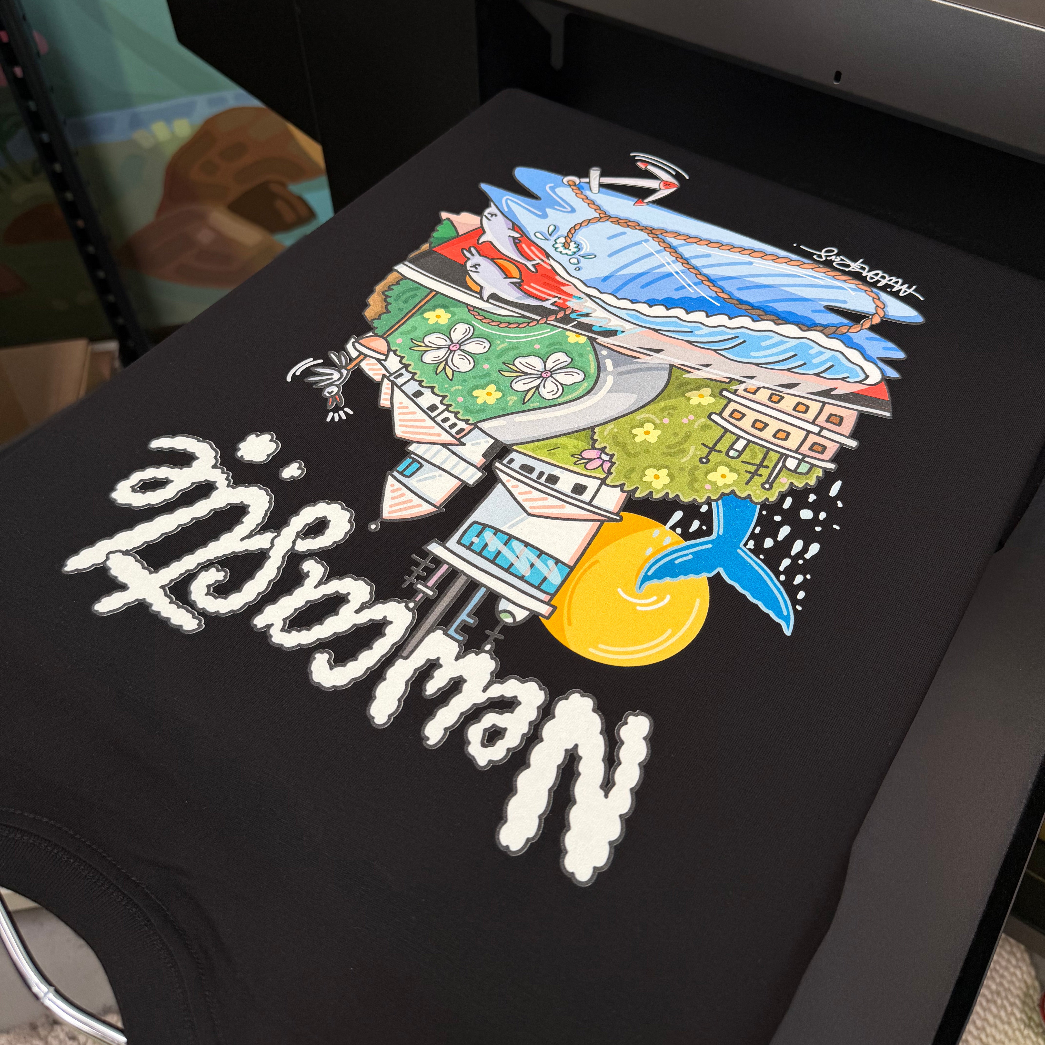 No minimums, Direct to garment printing for full-colour designs & fast fullfillment