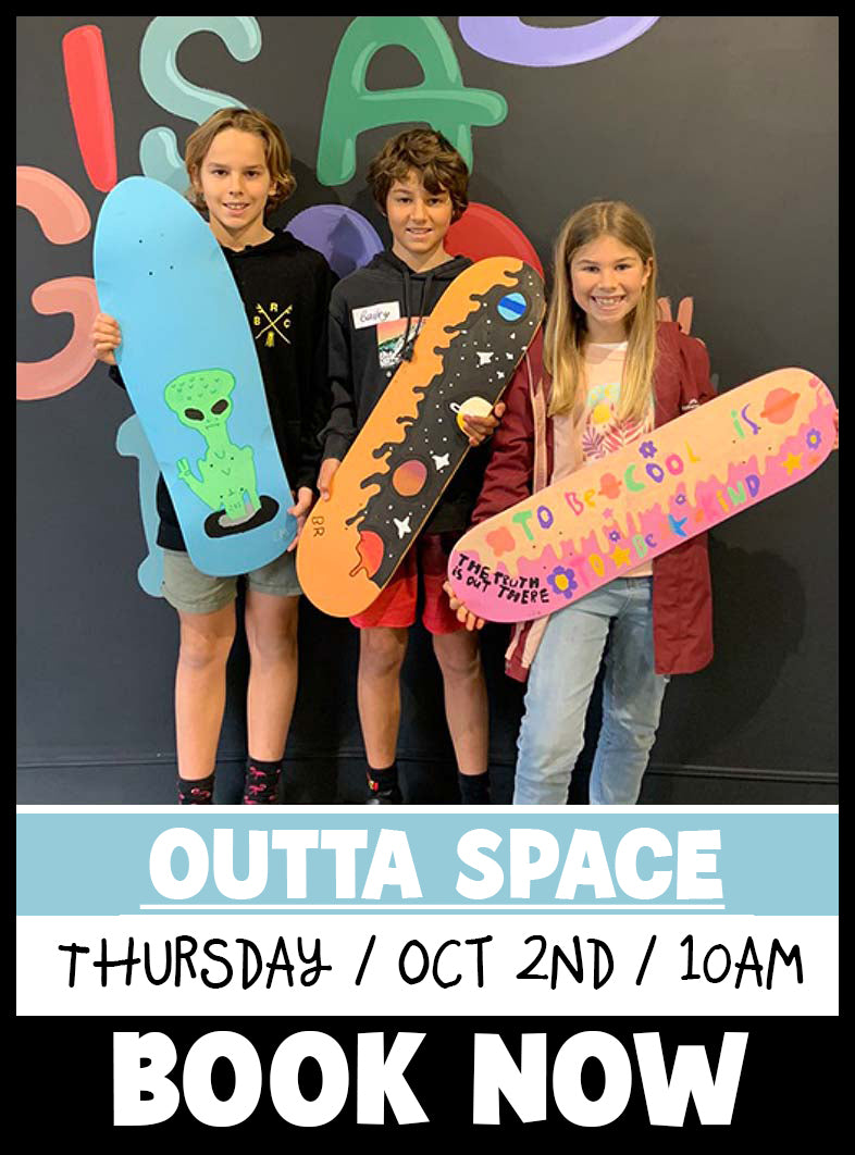 Join us these school holidays for Decked Out, a hands-on creative workshop where kids design and paint their very own skate deck! Taught by our talented art teachers in the vibrant Mitch Revs Gallery, this fun and inspiring session will help young artists express themselves in a big (and bold) way.