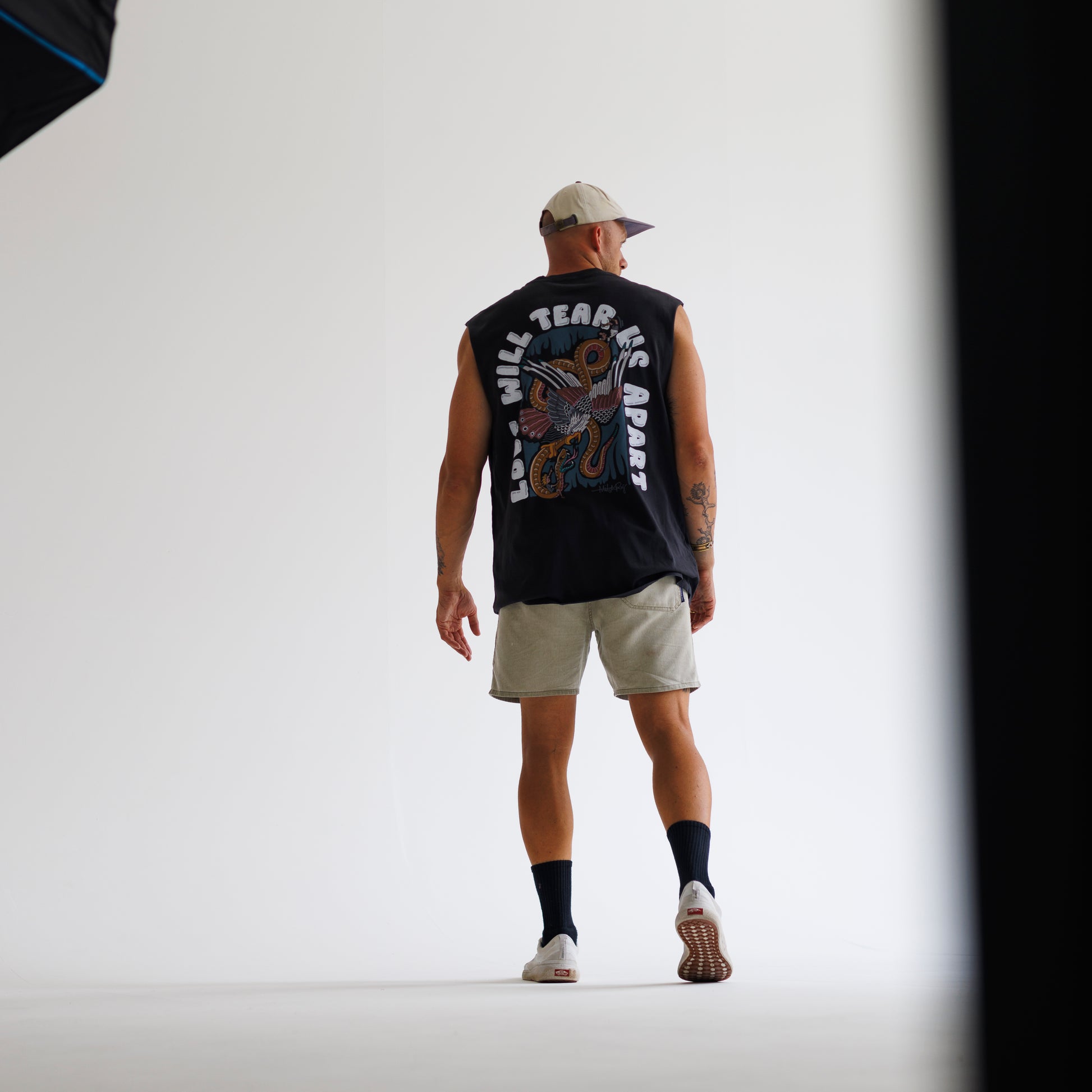 Wide neck ribbing with twin stitching, wide shoulders, raw armholes, side seamed, shoulder to shoulder tape, double needle hems, garment dyed, preshrunk to minimise shrinkage