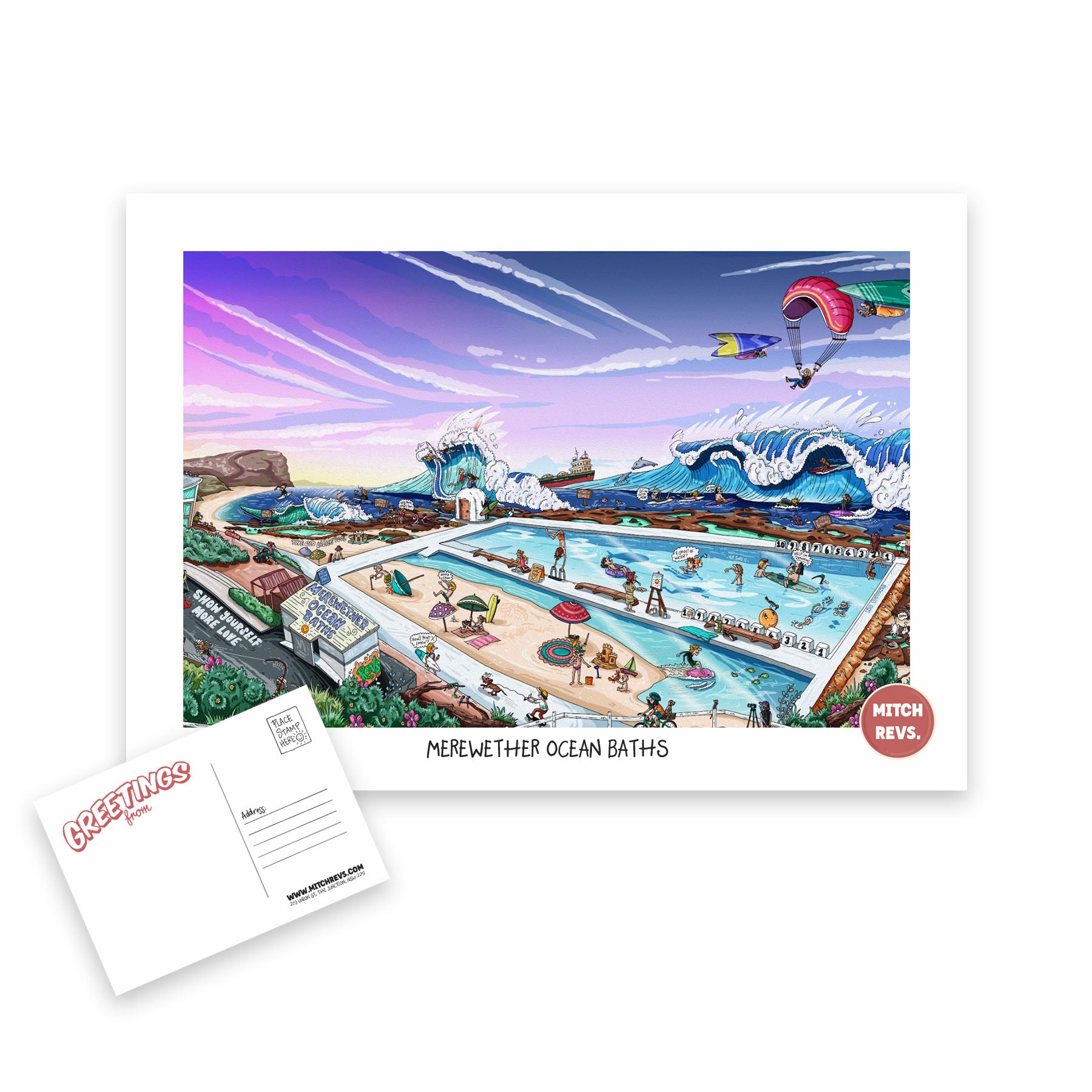 Add a splash of coastal charm to your day with the Mitch Revs Postcard.